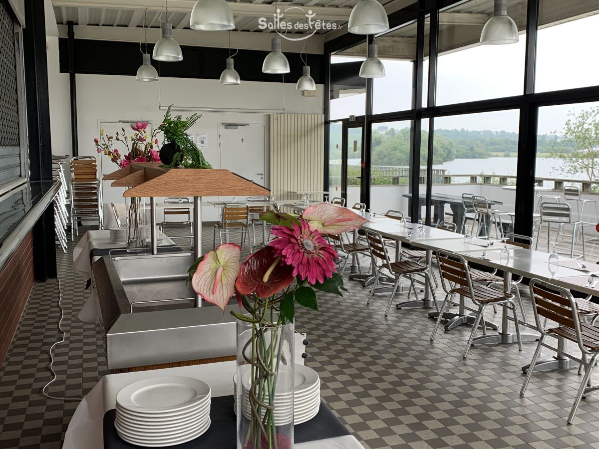 Notre salle à louer dispose d'un espace intérieur de 70m² pouvant accueillir 50 personnes en places assises, ainsi que d'une terrasse de 239m² offrant une vue à 180° sur la plage et le lac, idéale pour des événements en format cocktail pouvant recevoir jusqu'à 80 personnes.