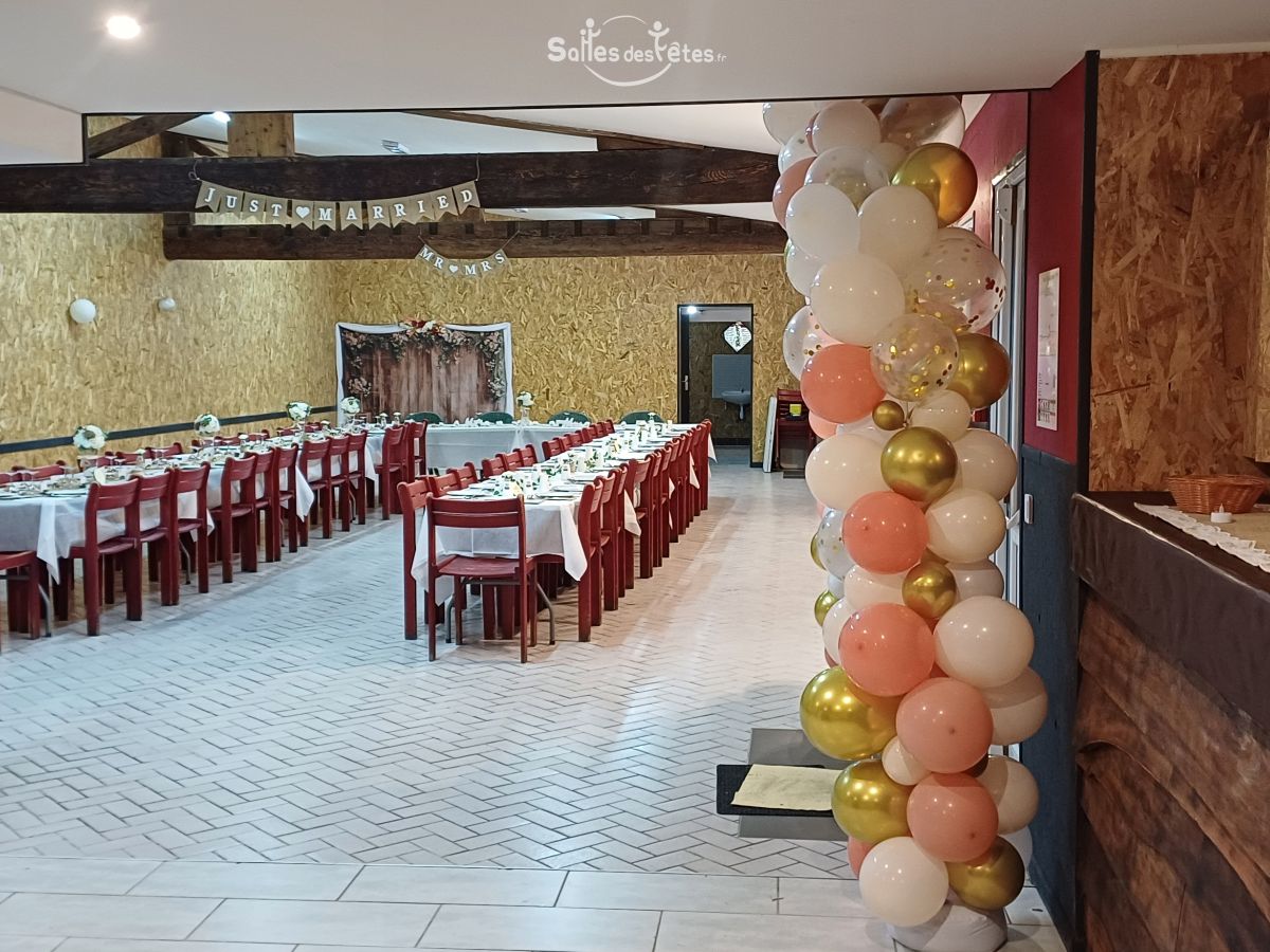 Salle de réception de 137 M² entièrement rénovée avec deux belles poutres apparentes pouvant accueillir jusqu’à 80 personnes assises idéal pour vos fêtes anniversaire, communion, baptême, mariage, séminaire professionnel….