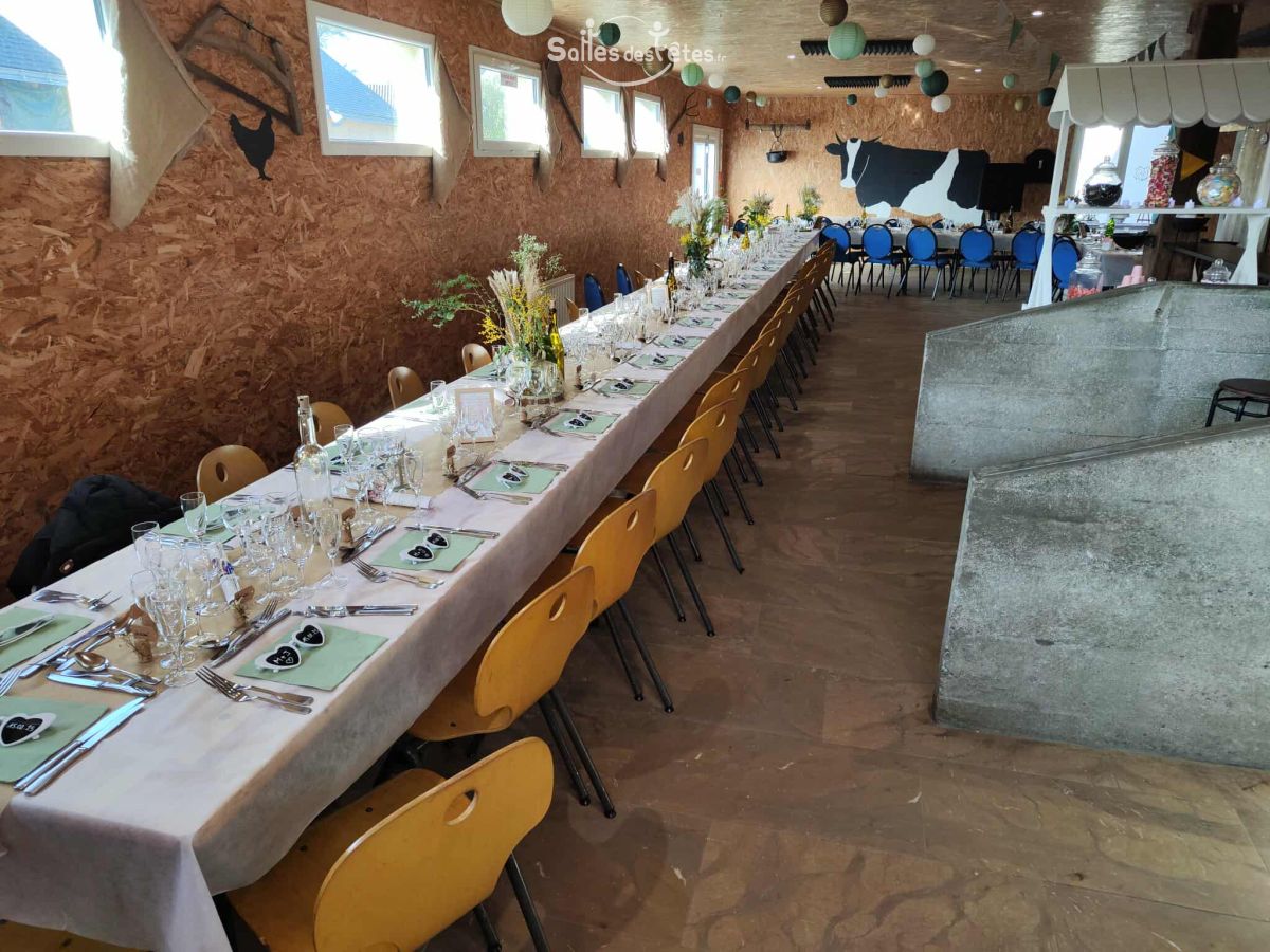 Nous mettons à votre disposition les tables, les chaises/bancs, salle d'eau, cuisine, vaisselle et chambre froide.