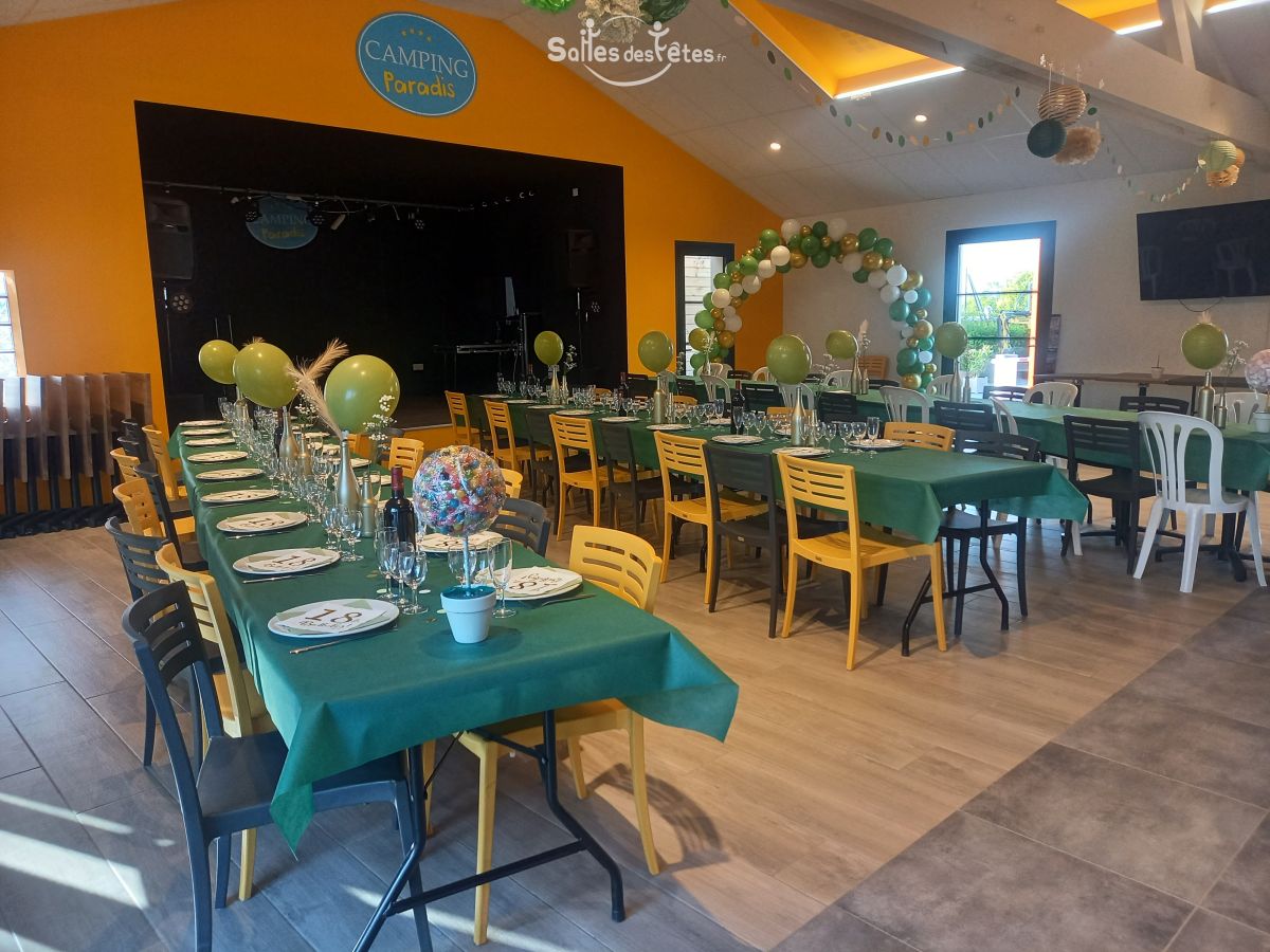 Vous recherchez un lieu convivial, pratique et chaleureux pour vos réceptions, fêtes familiales, réunions d’associations ou séminaires professionnels ? Le Camping Domaine Oyat, idéalement situé en Vendée, vous propose à la location sa salle de réception de qualité, pouvant accueillir de 30 à 90 personnes.