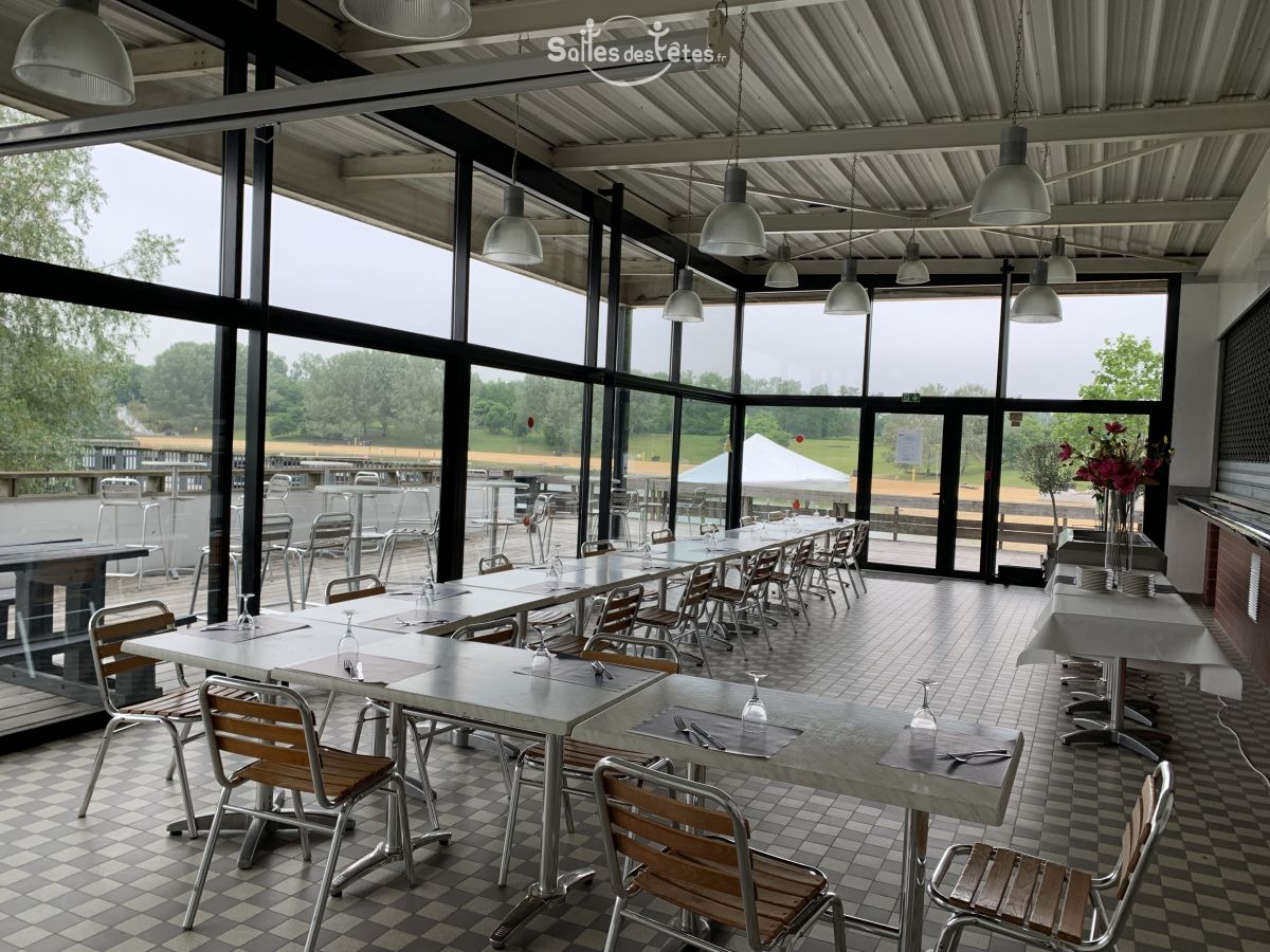 Notre salle à louer dispose d'un espace intérieur de 70m² pouvant accueillir 50 personnes en places assises, ainsi que d'une terrasse de 239m² offrant une vue à 180° sur la plage et le lac, idéale pour des événements en format cocktail pouvant recevoir jusqu'à 80 personnes.