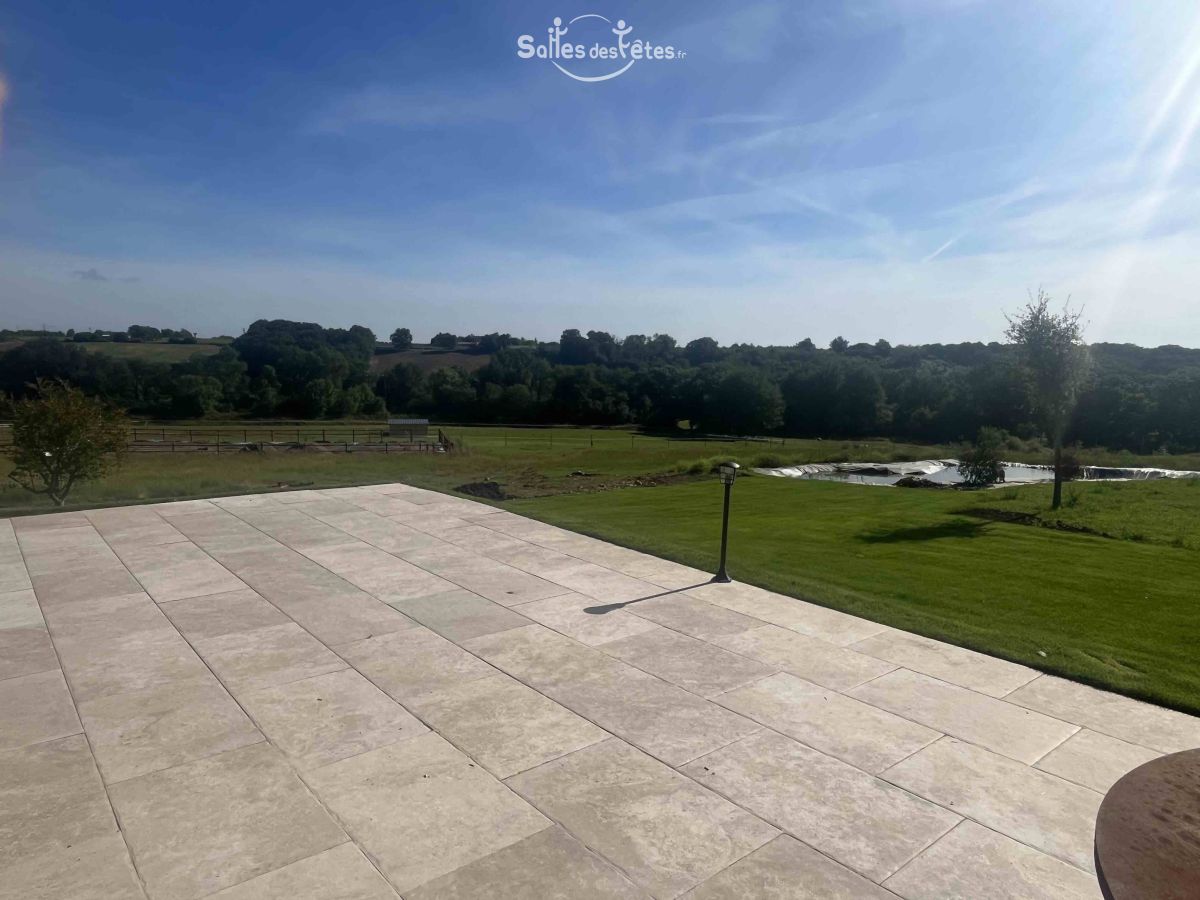 Dans un cadre de verdure, en pleine campagne, nous mettons à votre disposition une salle de réception de caractère de 120 m2, avec pierres et poutres apparentes, à 30 minutes de Toulouse.
