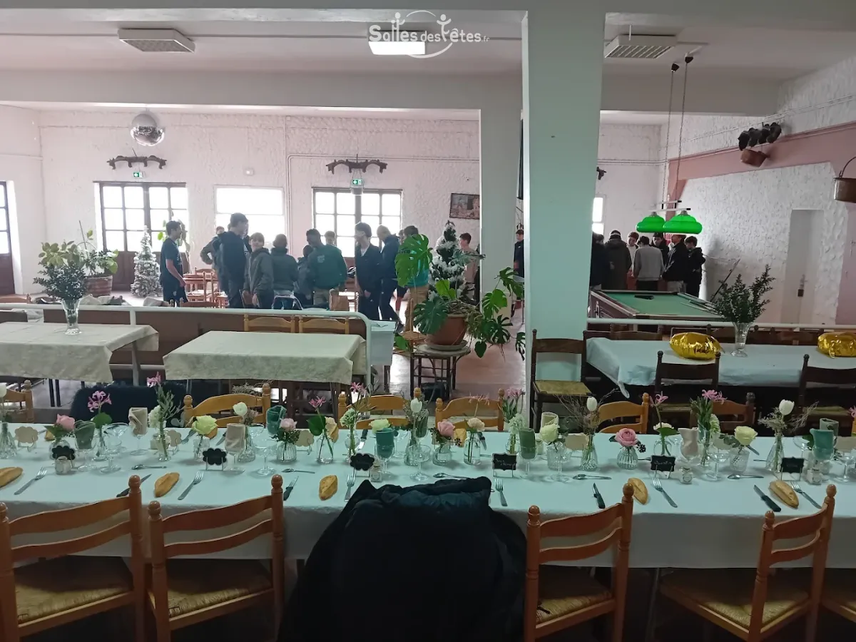SALLE DE RECEPTION 100 convives max. Accès jardin clos. Barbecue. Four, plonge, micro-ondes, frigo. Ping-pong, baby foot et billard à disposition. Prêt tables et chaises, carafes d'eau et glaçons. Possibilité de louer vaisselle, verrerie, nappes tissus.