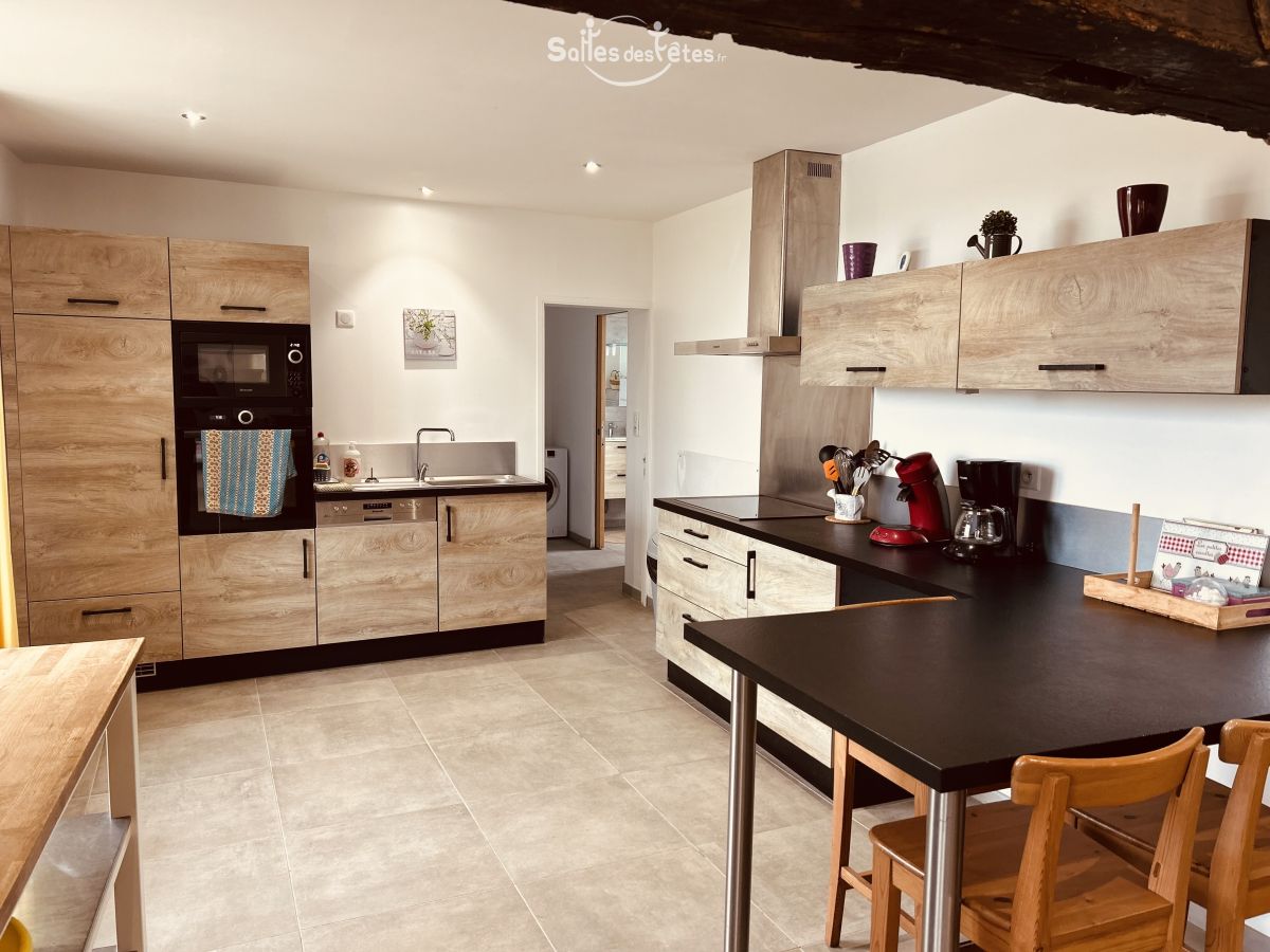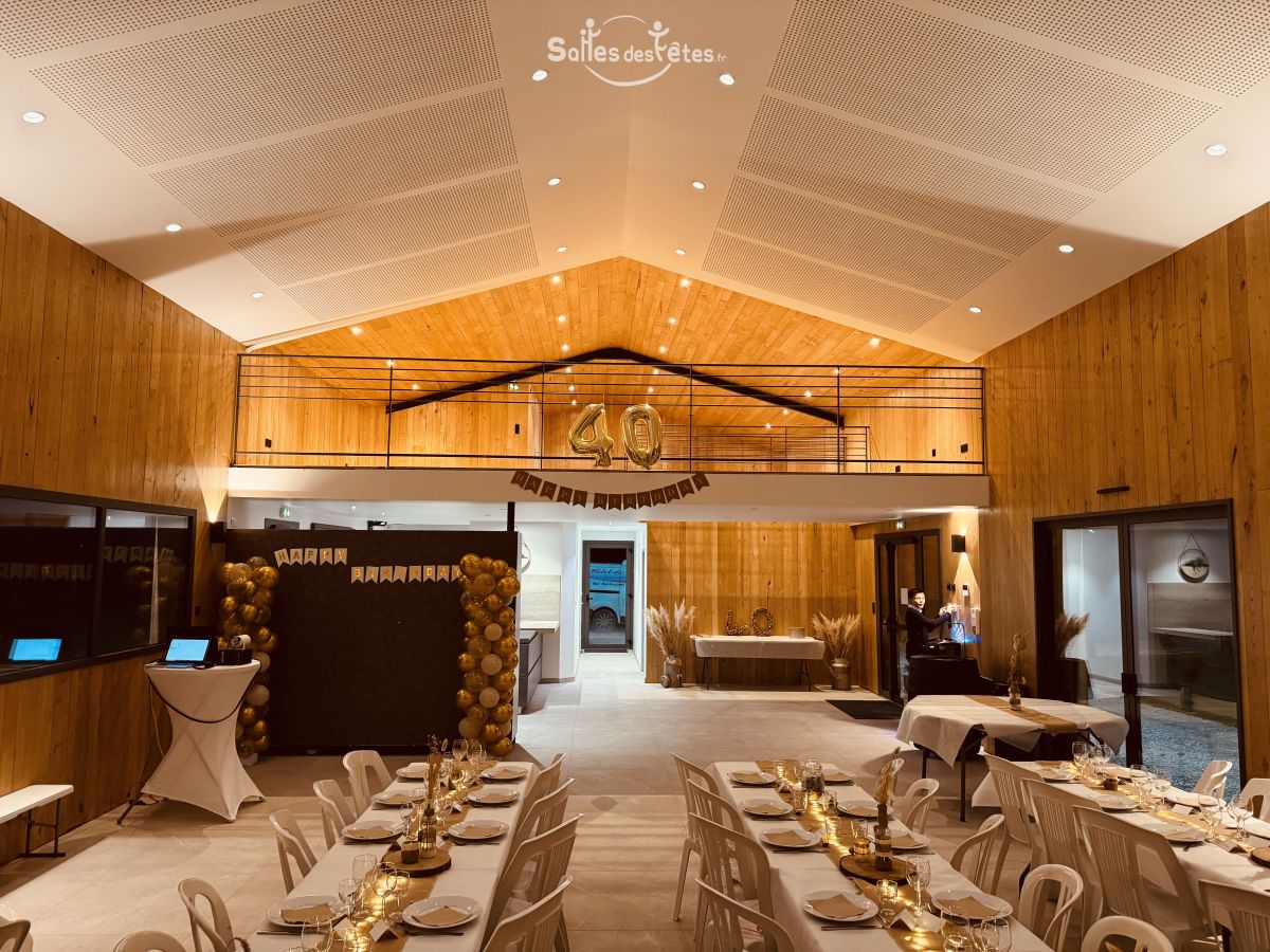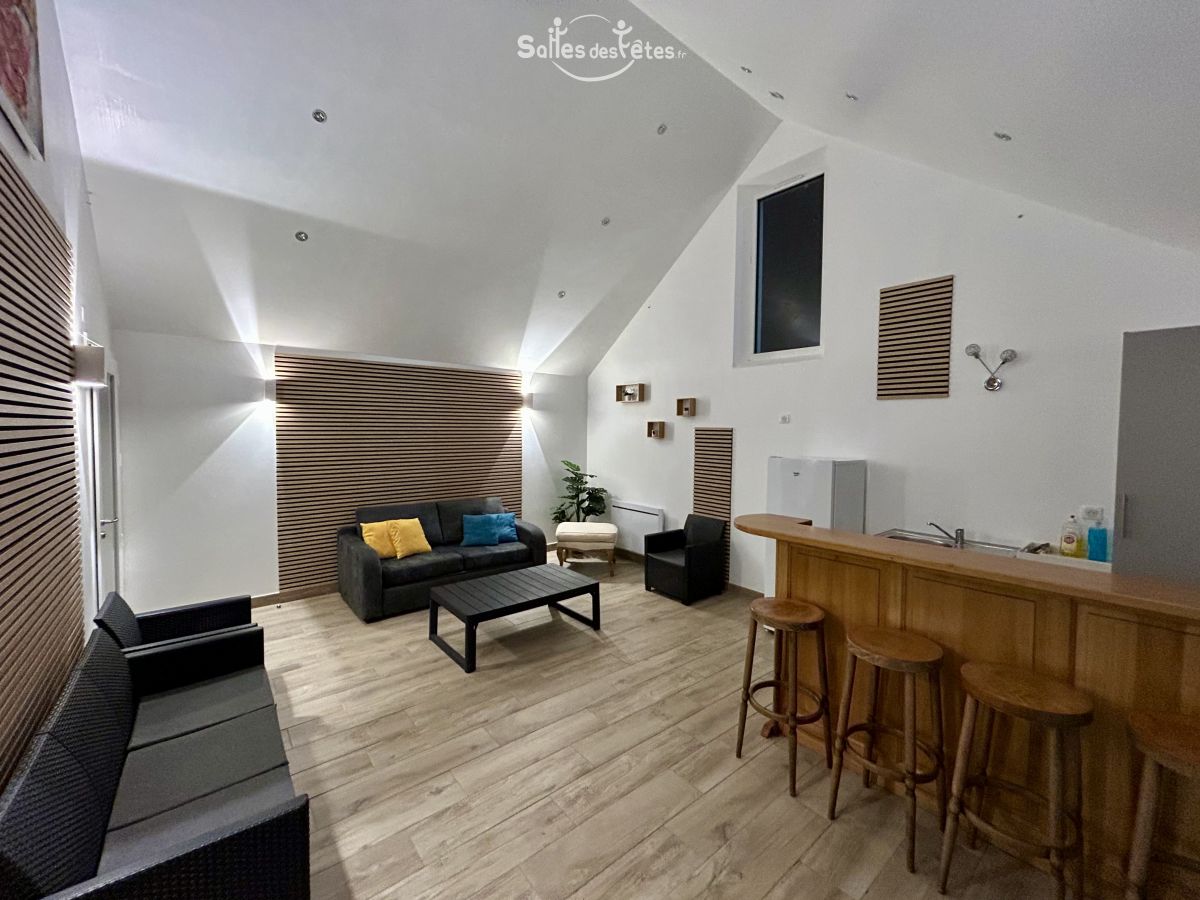 Il s'agit une grande salle de 120 m² unique à l’ambiance champêtre pouvant accueillir environ 70 personnes assises ou plus pour vos réceptions cocktails debout . Vous disposerez d’une spacieuse cuisine toute équipée avec son incroyable îlot central très convivial pour se retrouver avec vos invités, un vestiaire avec coin canapé et des toilettes accès PMR