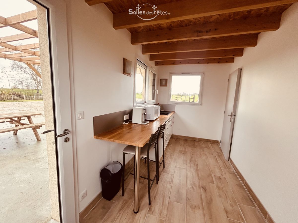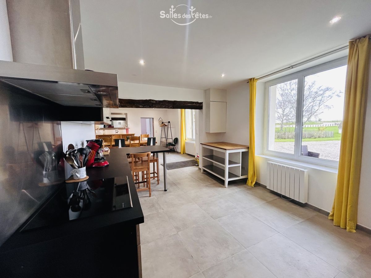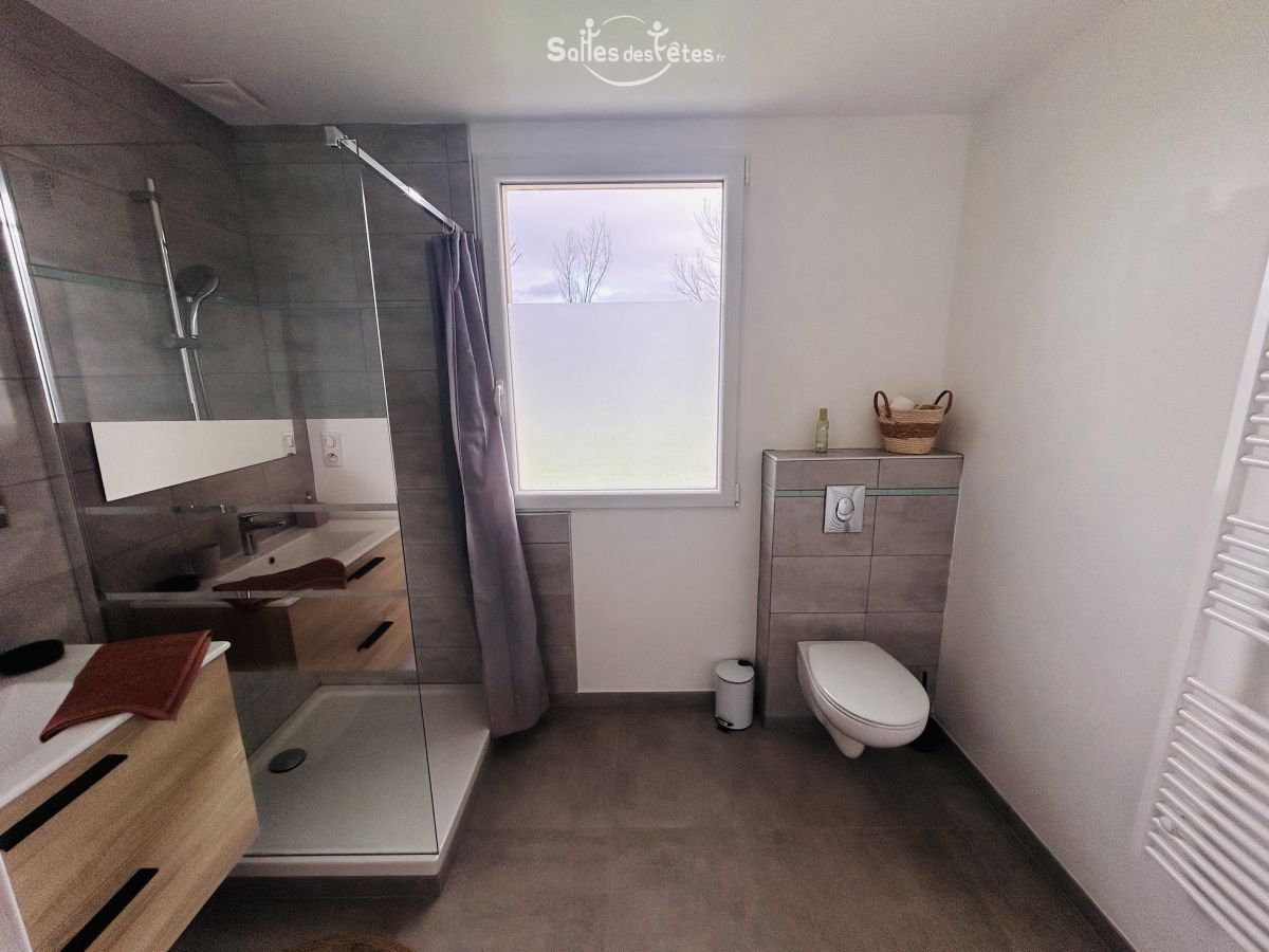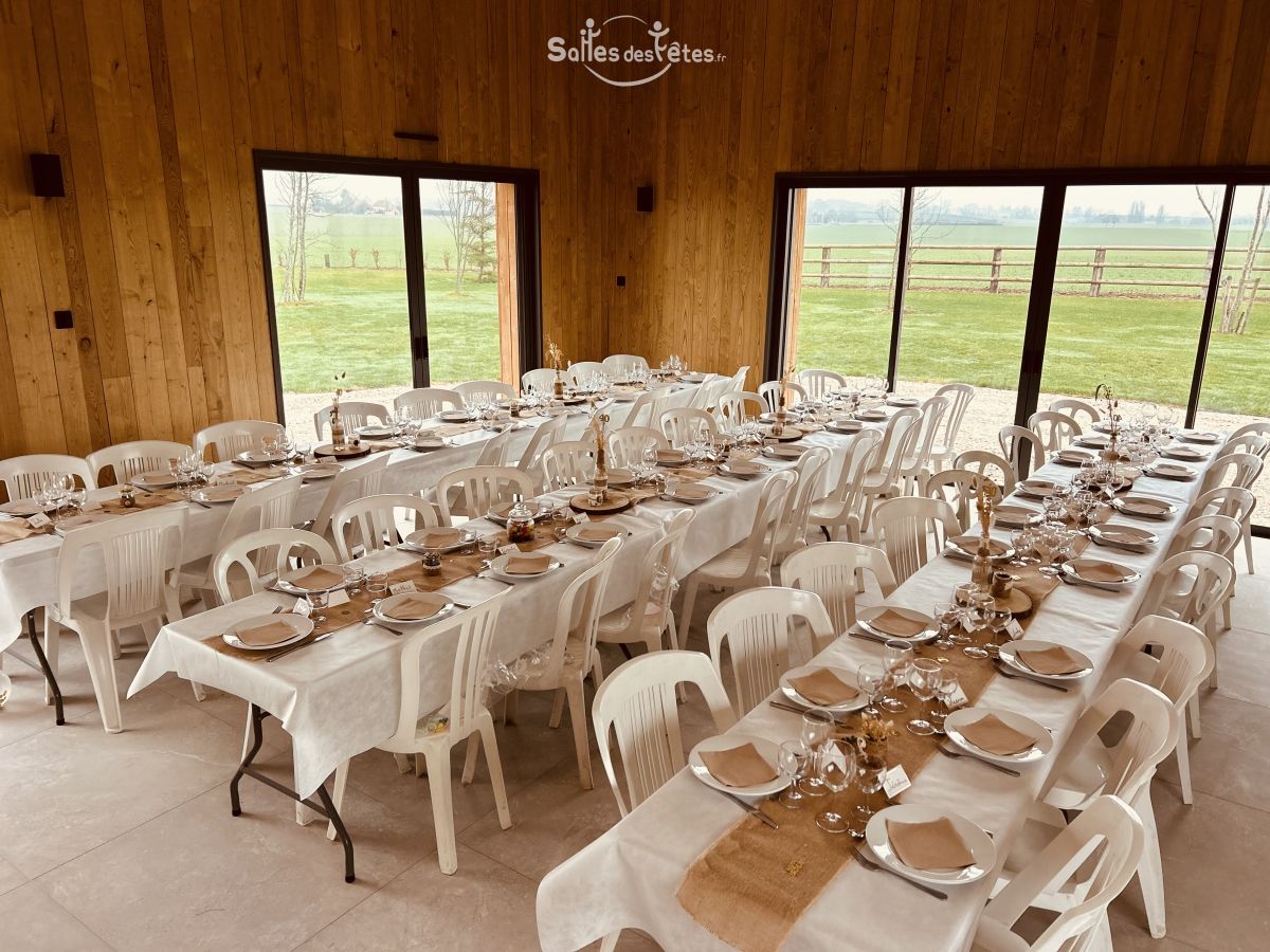 Il s'agit une grande salle de 120 m² unique à l’ambiance champêtre pouvant accueillir environ 70 personnes assises ou plus pour vos réceptions cocktails debout . Vous disposerez d’une spacieuse cuisine toute équipée avec son incroyable îlot central très convivial pour se retrouver avec vos invités, un vestiaire avec coin canapé et des toilettes accès PMR