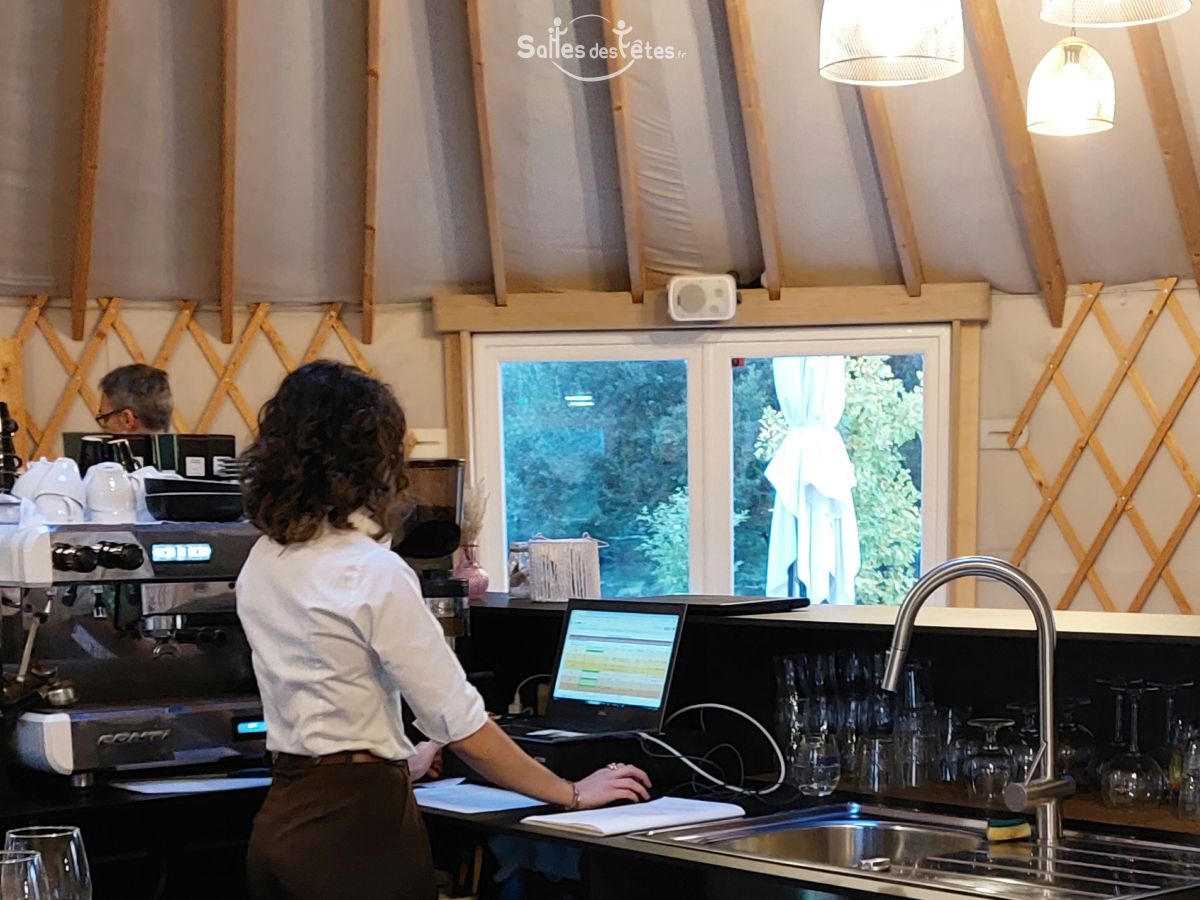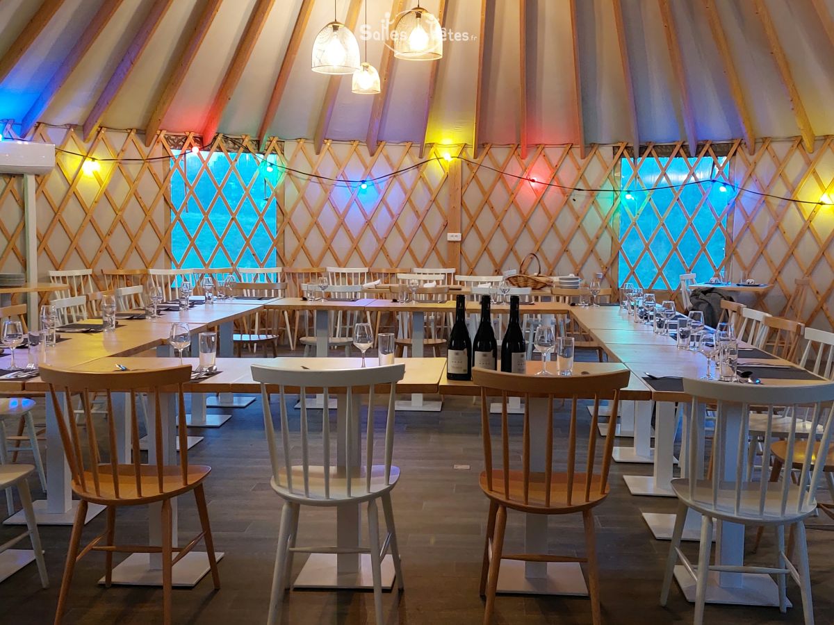Notre espace restauration est constitué de 3 yourtes communicantes de 300m² au total et d'une terrasse de 300m² également.